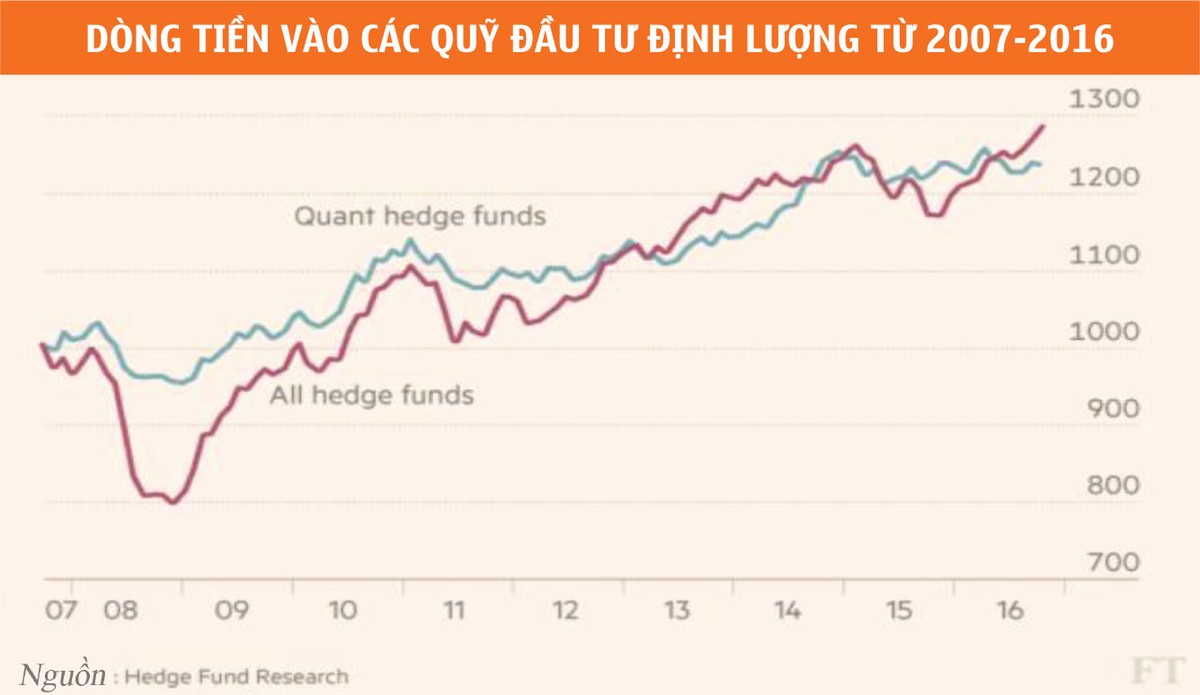 “Sự thành công của các quỹ đầu tư định lượng, cùng với niềm tin cho rằng tương lai đầu tư sẽ được điều khiển bằng máy tính nhiều hơn đã dẫn đến việc, hàng tỷ người trên thế giới lao vào ngành công nghiệp này. Các nhà quản lý tài sản truyền thống, cũng từng bức áp dụng một số kỹ thuật của mảng này”, Financial Times nhận định.