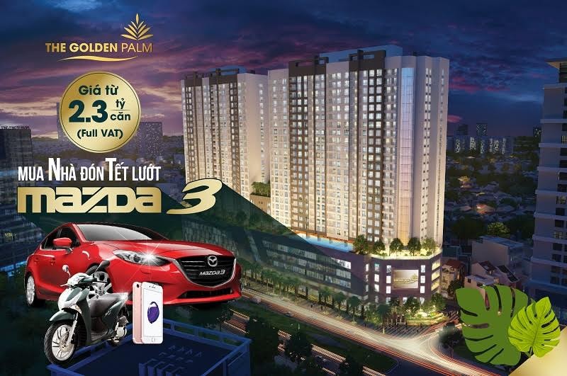 Đây là một trong những quà tặng giá trị nằm trong chương trình “Mua nhà đón Tết lướt Mazda cùng The Golden Palm” được gửi đến từ chủ đầu tư HDIS, với cơ cấu giải thưởng gồm: 1 xe Mazda 3; 2 xe máy SH, 3 điện thoại iPhone 7, cùng nhiều quà tặng khác với tổng giá trị giải thưởng lên tới 1 tỷ đồng.