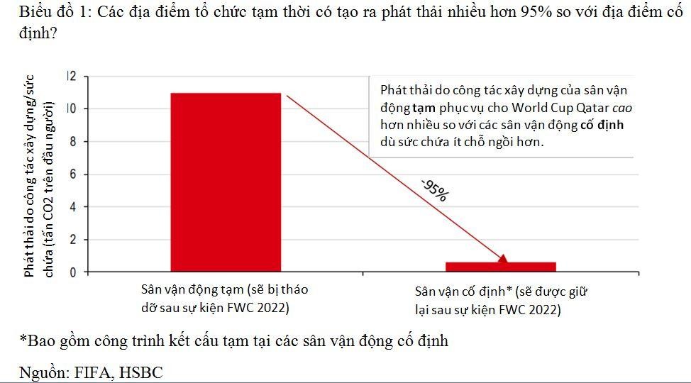 Theo HSBC, nước chủ nhà Qatar đang hướng đến mùa World Cup đầu tiên đạt trung hòa các-bon, mức độ đáng tin cậy của cam kết này cũng như phương pháp được sử dụng để tính toán mức phát thải đang hứng chịu chỉ trích từ dư luận. Báo cáo cho rằng, sự kiện World Cup có thể đóng vai trò như một cẩm nang nói chung cho nhà đầu tư nhằm nhận diện các yếu tố đáng báo động về khí hậu và “tẩy xanh”.