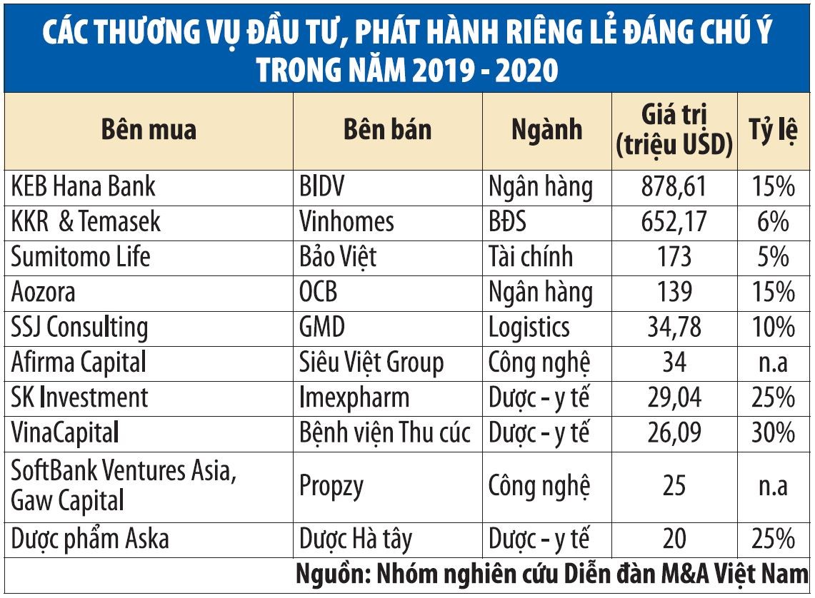 Báo cáo của Euromonitor International mới đây chỉ ra rằng, sau khi chững lại vì Covid-19, dự báo hoạt động M&A khu vực Đông Nam Á sẽ tăng vọt vào năm tới, hơn cả Mỹ và Trung Quốc. Trong đó, các quốc gia Ấn Độ, Philippines và Việt Nam được dự báo sẽ tăng trưởng nhanh (khoảng 26%), nhất là trong lĩnh vực dịch vụ truyền thống, mạng lưới phân phối, bán lẻ, bất động sản...