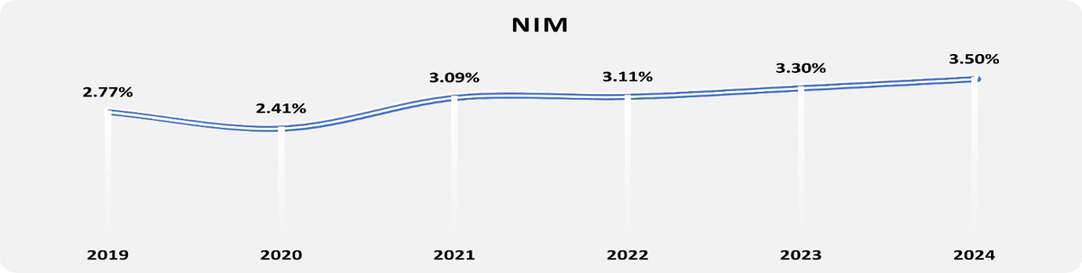 Tỷ lệ NIM của Nam A Bank tiếp tục được cải thiện mức 3,5% (so với 3,3% cùng kỳ năm 2023 ).