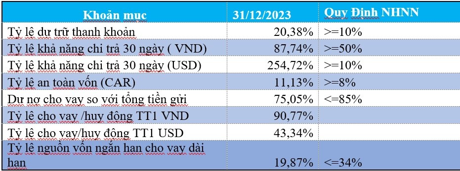 Hơn thế nữa, các chỉ số về an toàn trong hoạt động vượt xa mức quy định của NHNN. Nam A Bank cũng đã tuân thủ các chỉ số thanh khoản, đạt được tiêu chí của Basel III.