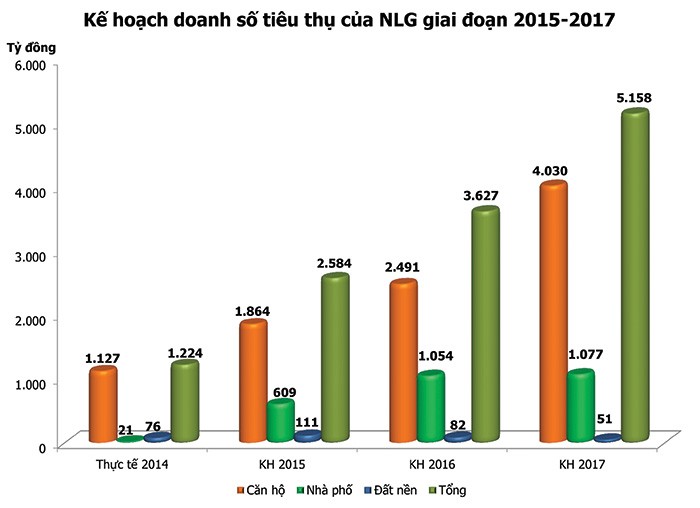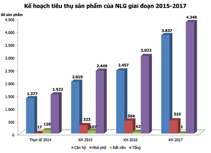 Trong khi đó, NLG sau giai đoạn chạy đà, tích lũy kinh nghiệm, xây dựng được một quy trình triển khai dự án từ thiết kế, xây dựng, đầu tư, bán hàng hiệu quả nhất, đã bước vào đầu tư quy mô lớn. Theo kế hoạch, năm 2015, NLG chào bán ra thị trường 2.263 sản phẩm, gần gấp đôi năm trước.