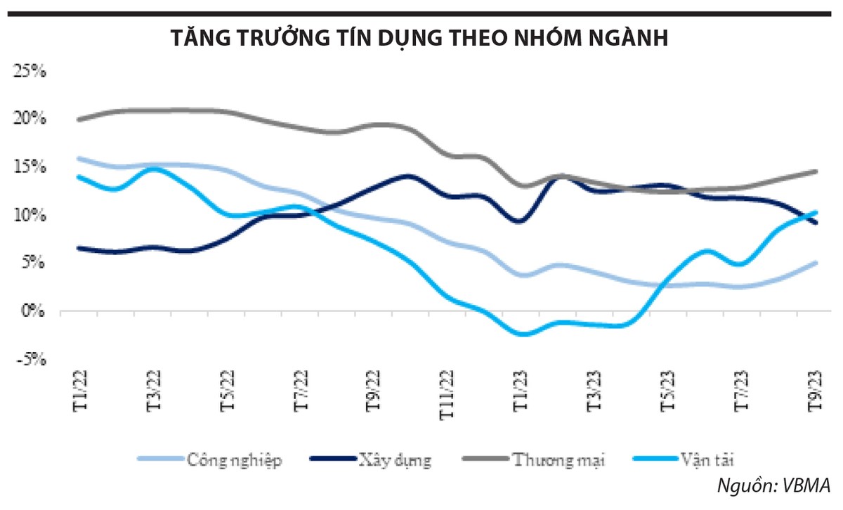 Cơ cấu tín dụng của hệ thống ngân hàng đã có sự dịch chuyển đáng kể trong 10 năm qua. Hai nhóm ngành nghề có tỷ trọng cho vay gia tăng nhiều nhất là thương mại bán lẻ và cho vay tiêu dùng hộ gia đình. Trong đó, cho vay tiêu dùng hộ gia đình tăng trưởng mạnh nhất từ 5% lên hơn 12% với phần lớn là nhu cầu cho vay tiêu dùng bất động sản.