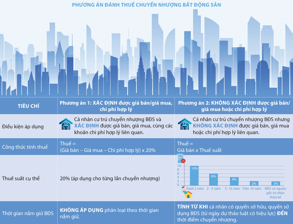 Thực tế, theo đánh giá của các chuyên gia, đối với thu nhập từ hoạt động chuyển nhượng bất động sản, Luật Thuế thu nhập cá nhân hiện hành đang quy định thu thuế thu nhập cá nhân đối với chuyển nhượng bất động sản là 2% trên giá chuyển nhượng từng lần.