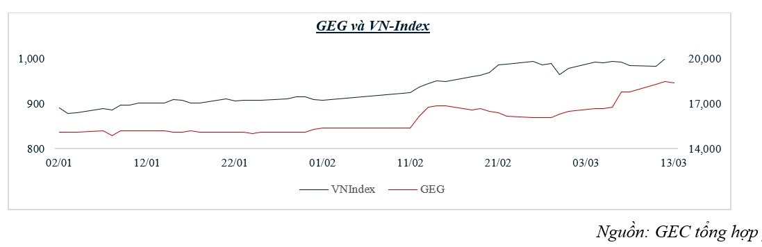 Cũng năm trong xu thế tích cực của thị trường, cổ phiếu GEG của GEC đang thể hiện những bước tăng trưởng đột phá khi giá chốt phiên ngày 14/3 đạt 18.300 đồng, tăng 21% so với đầu năm 2019 và gần 62% so với đầu năm 2018.