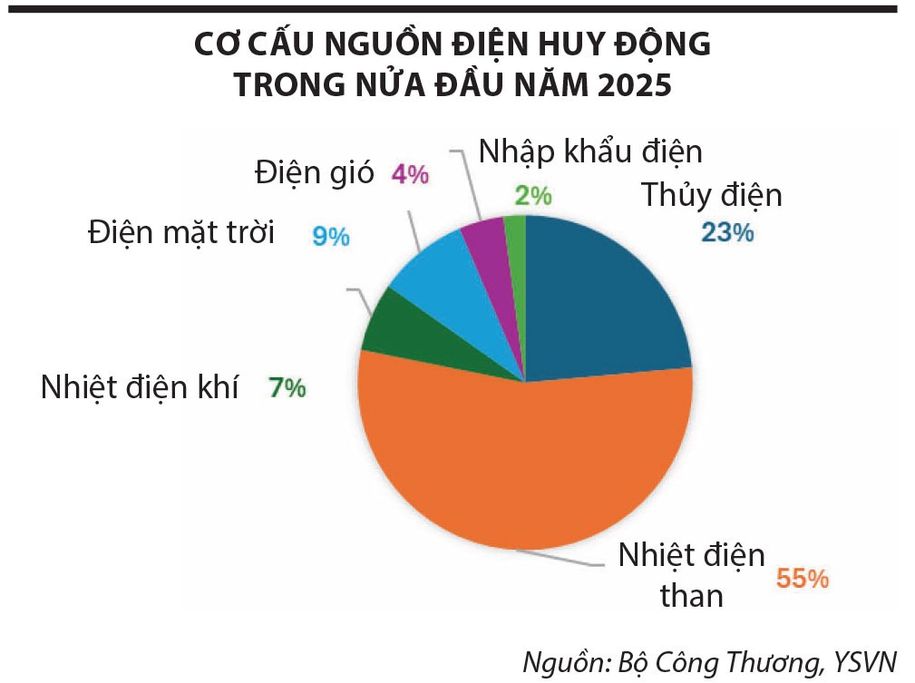 Trong bối cảnh đó, điện than tiếp tục được huy động tối đa để bù đắp. Dù giá than thế giới tăng làm chi phí đầu vào cao hơn, điện than vẫn đóng vai trò nguồn điện nền khi Việt Nam chủ động được nguồn cung trong nước và nhập khẩu.
