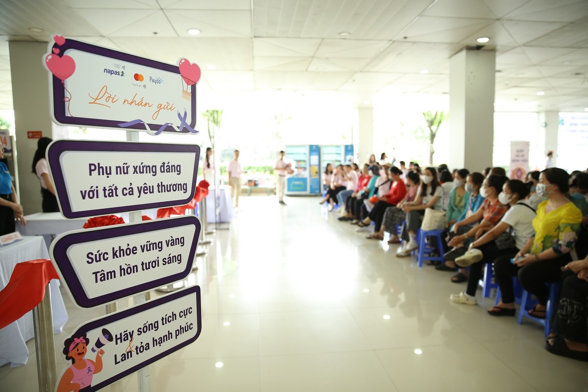 Tại buổi lễ, NAPAS, Mastercard và Payoo đã trao tặng 2.010 suất tầm soát 04 bệnh ung thư cho phụ nữ yếu thế tại Hà Nội và TP.HCM, đồng thời cam kết hỗ trợ 200 suất tầm soát chuyên sâu (trị giá 5 triệu đồng/suất) cho những phụ nữ có nguy cơ cao mắc bệnh.