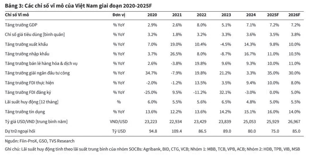 Dù xuất khẩu có thể chịu ảnh hưởng nhất định từ câu chuyện thuế đối ứng của Mỹ trong nửa cuối năm 2025, kinh tế Việt Nam được dự báo vẫn tăng trưởng cao trong 6 tháng cuối năm, qua đó đạt mục tiêu cả năm 8% mà Chính phủ đặt ra. Trong bối cảnh kinh tế toàn cầu dự báo chỉ tăng trưởng 2,3% và Trung Quốc có thể chỉ đạt 4,5%, đây là một mức tăng trưởng vượt trội, tạo nền tảng cho niềm tin vào thị trường tài chính trong nước.