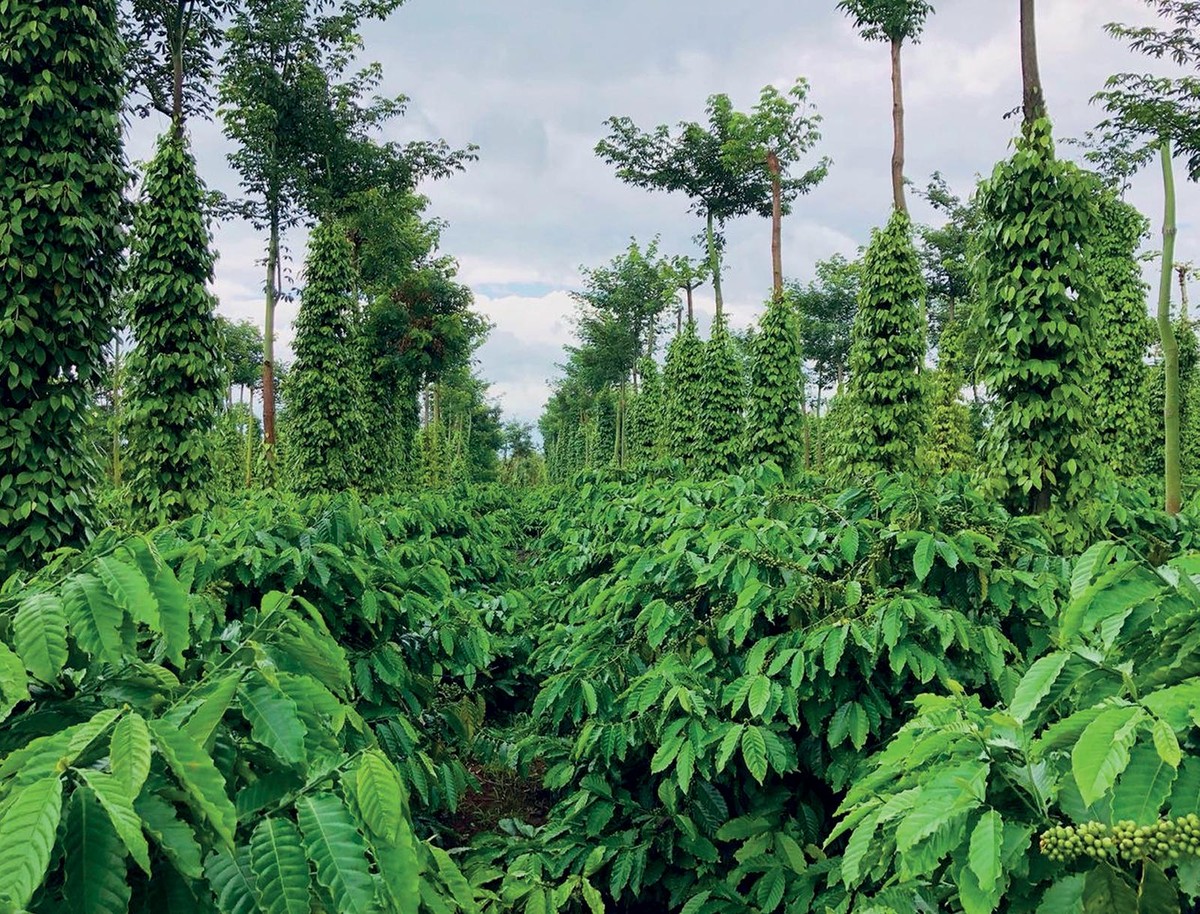 3.Bảo vệ môi trường: Nestlé Việt Nam xây dựng nền nông nghiệp tái sinh với mô hình xen canh hợp lý, tiểu biểu như trồng hồ tiêu xen cà phê. Trong đó, cây tiêu vừa là cây che bóng vừa là cây chắn gió nên chỉ cần trồng xen 30% cây tiêu trên vườn cà phê thì lượng các-bon hấp thụ vào đất sẽ cao hơn lượng phát thải. Ngoài ra, cây che bóng đóng vai trò là cây chắn gió trong mùa khô, giúp cải thiện điều kiện sinh thái, làm giảm nhiệt độ và độ bốc hơi trong vườn cây. Cây tiêu cũng là một loại cây cố định đạm có tác dụng cải thiện cấu trúc đất và tăng thêm dưỡng chất cho cả cây trồng.