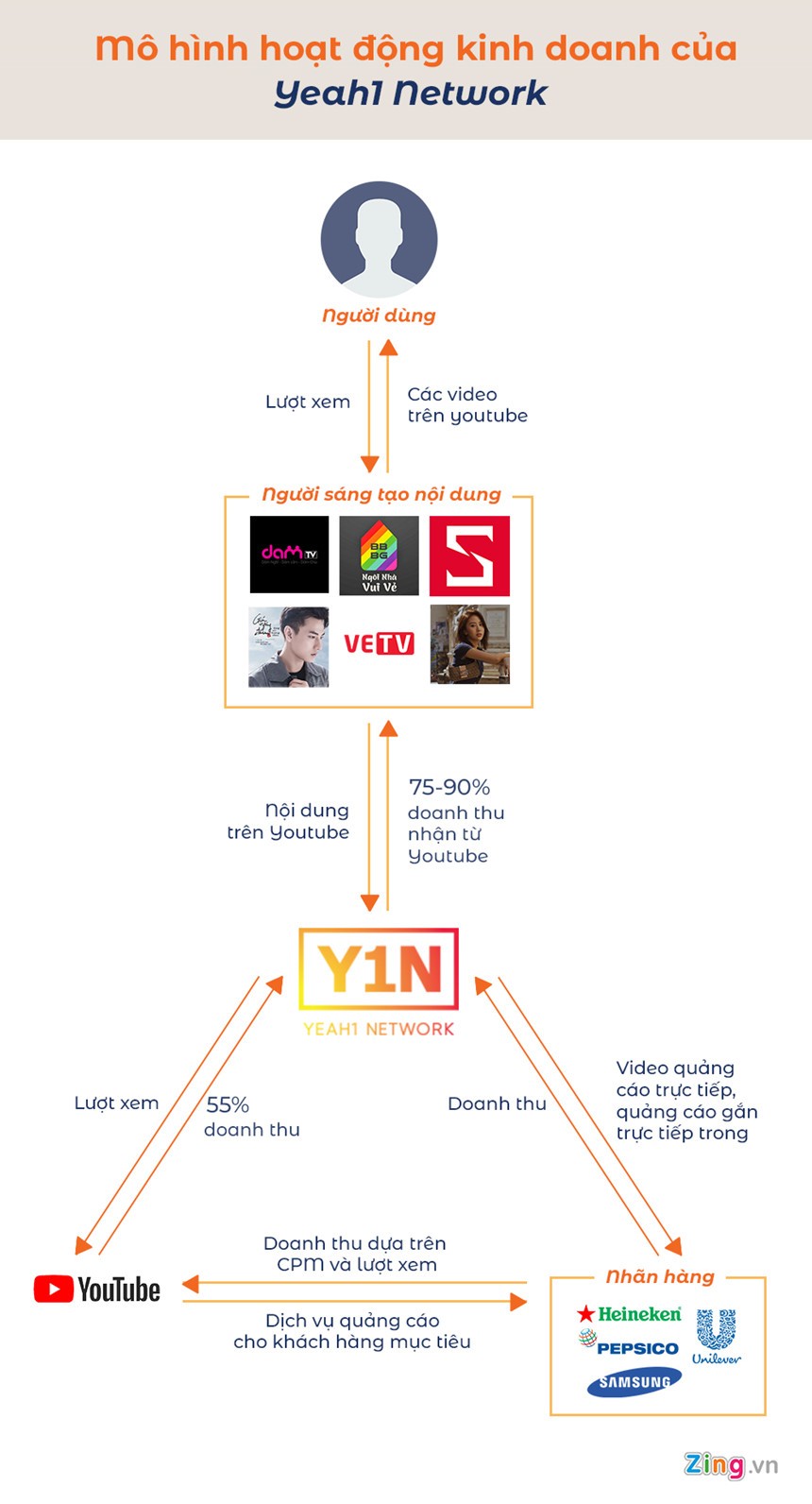 Đây cũng là lý do các chủ kênh YouTube ở Việt Nam tìm đến các network kiểu như Yeah1, MeTub... Đổi lại việc này, các chủ kênh phải mất 10-40% số tiền kiếm được từ YouTube cho network.