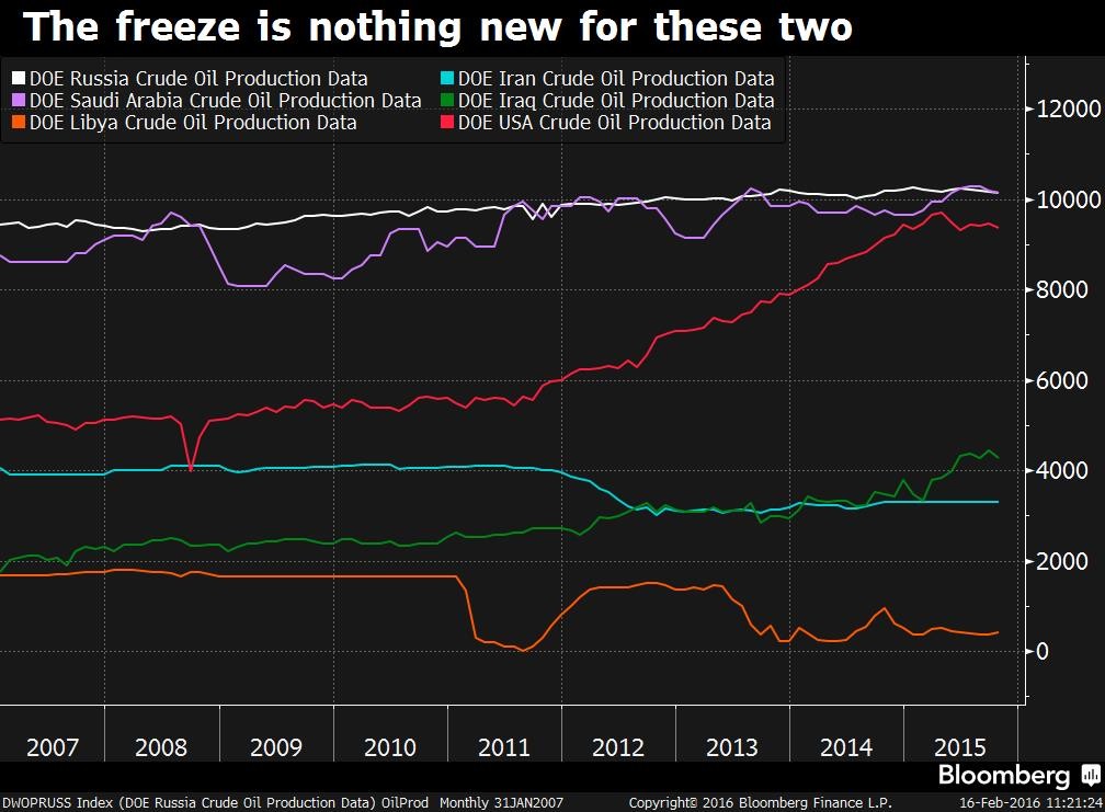 Trong khi đó, nguồn cung dầu từ Libya và Iran đang gia tăng nhanh chóng, các nhà sản xuất dầu đá phiến tại Bắc Mỹ sẵn sàng thúc đẩy sản lượng dầu lên cao hơn nữa. Việc sản lượng dầu thô không ngừng tăng lên tại các quốc gia và khu vực này mới đóng vai trò chính quyết định tới việc giá dầu có thể hồi phục hay không, chứ không phải tại Nga hay Ả Rập Xê út.