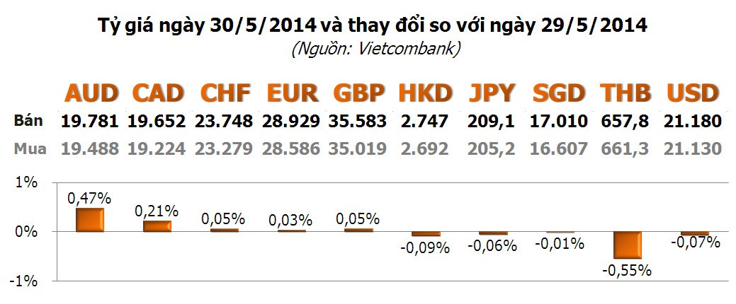 Các ngoại tệ khác, chỉ có AUD và THB tăng/giảm đáng kể với 0,47% và -0,55%.