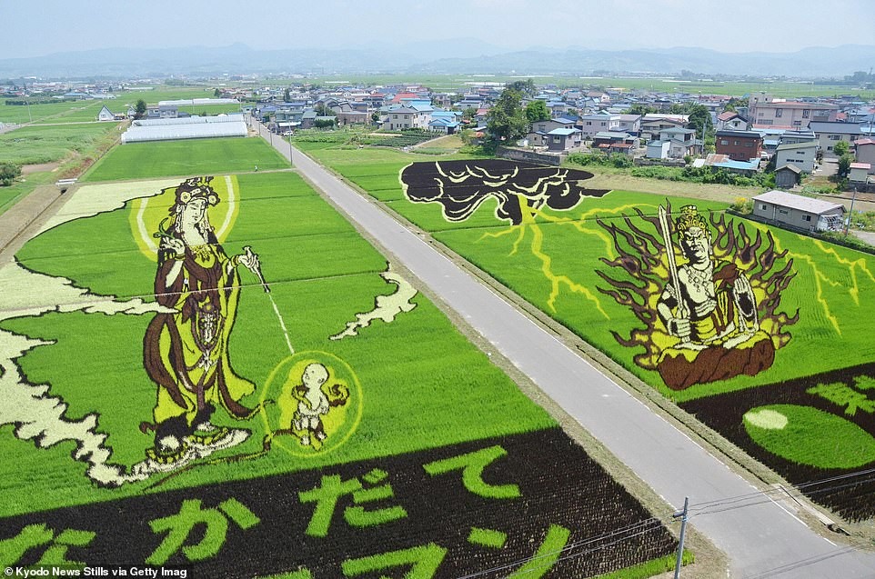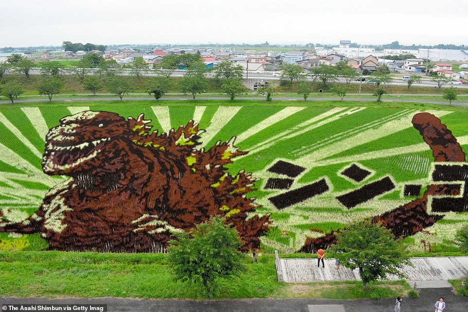 Mỗi năm, các nông dân tại làng Inakadate lại tạo ra một bức tranh với chủ đề mới, không năm nào giống năm nào. Năm nay, hình ảnh quái vật Godzilla được tái hiện một cách tỉ mỉ, hoành tráng, sống động như vừa bước ra từ một bộ phim.d