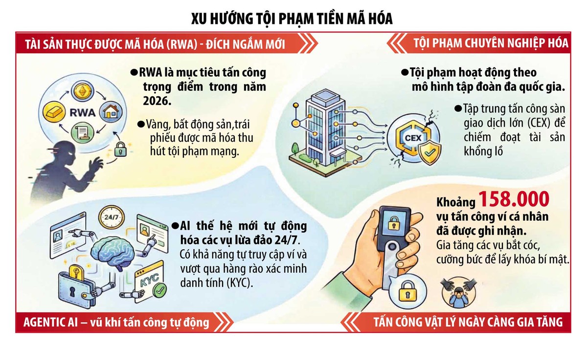 Hơn nữa, từ vụ đánh cắp kỷ lục hơn 2 tỷ USD chỉ trong năm 2025 cảnh báo, không còn là những nhóm hacker đơn lẻ, mà tội phạm crypto đã mang dáng dấp của các tập đoàn đa quốc gia, là mối đe dọa thường trực.