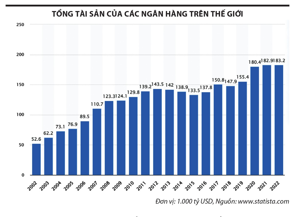 Trong giai đoạn 2002 - 2012, khi ngành ngân hàng đẩy nhanh phát triển ngân hàng Internet (Bank 3.0) trong khi chưa xuất hiện các công ty Fintech, tổng tài sản của các ngân hàng trên thế giới tăng gần 3 lần, từ 52.000 tỷ USD lên khoảng 143.500 tỷ USD (tăng bình quân 10,56%/năm). Từ năm 2013 đến trước dịch Covid-19, tổng tài sản của ngành ngân hàng tăng không đáng kể (tăng trung bình 1,14%/năm).