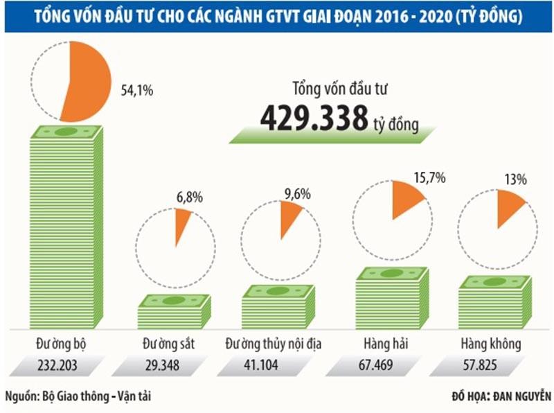 Để cụ thể hóa Kết luận số 27-KL/TW và Chiến lược 1686, Bộ GTVT đã dự kiến nhu cầu vốn đầu tư đối với từng giai đoạn (giai đoạn 2011 - 2015 dự kiến khoảng 25.378 tỷ đồng - chiếm 5,38% nhu cầu toàn ngành; giai đoạn 2016 - 2020 dự kiến khoảng 134.087 tỷ đồng - chiếm 14,07% nhu cầu toàn ngành). Tuy nhiên, do khó khăn về nguồn lực đầu tư, nên giai đoạn 2011 - 2015 chỉ huy động được 10.070 tỷ đồng - chiếm 1,83% toàn ngành; giai đoạn 2016 - 2020 huy động được 29.348 tỷ đồng - chiếm 6,84%.