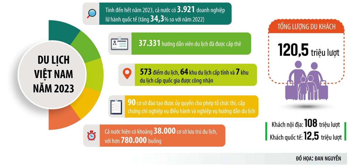 Với sự phục hồi mạnh mẽ, năm 2023, ngành du lịch Việt Nam đã thu được nhiều kết quả tích cực. Tổng khách du lịch quốc tế ước đạt 12,5 triệu lượt, vượt chỉ tiêu đặt ra từ đầu năm (8 triệu lượt) và đạt mục tiêu đã điều chỉnh (12,5 - 13 triệu lượt). Khách du lịch nội địa ước đạt 108 triệu lượt, vượt 5,8% so với kế hoạch. Tổng thu từ khách du lịch ước đạt 672.000 tỷ đồng, vượt 3,38% so với kế hoạch năm 2023.