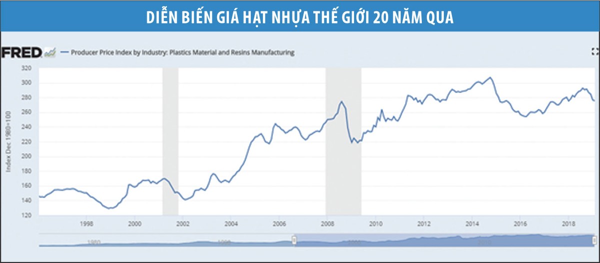 Từ cuối năm 2018, với việc giảm nhẹ trở lại của giá dầu thô, giá nguyên liệu nhựa cũng có xu hướng chững lại và được dự báo sẽ không quá biến động trong năm 2019. Nếu giả định này là đúng, kết quả kinh doanh các doanh nghiệp lớn trong ngành sẽ bớt bị tác động bởi giá nguyên vật liệu.
