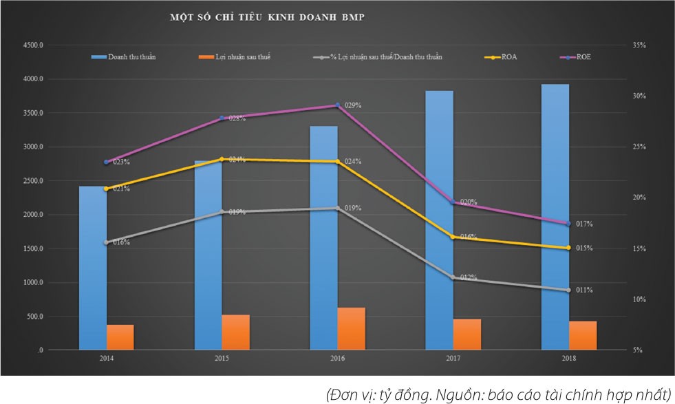 Đến năm 2018, kết quả kinh doanh của cả 2 ông lớn ngành nhựa xây dựng, công trình (mỗi công ty chiếm khoảng 30% thị phần cả nước, tương đương mức thị phần tổng cộng xấp xỉ 60% thị phần cả nước) sụt giảm mạnh. Trong năm này, tỷ lệ lợi nhuận sau thuế/doanh thu thuần của BMP và NTP giảm lần lượt về mức 10,91% và 7,34% (xem đồ thị).