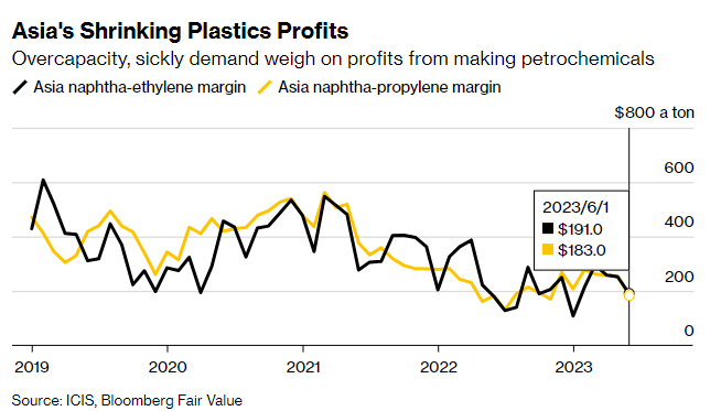 Hậu quả là biên lợi nhuận từ các sản phẩm hóa dầu như ethylene và propylene có thể giảm, từ đó càng gây khó khăn cho một ngành vốn đã chịu nhiều áp lực trong năm nay. Trong tháng 6 vừa qua, biên lợi nhuận của ngành này ở mức thấp hơn khoảng 40% so với năm 2019.