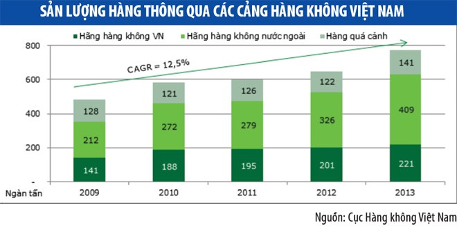 Trong 5 năm qua, tốc độ tăng trưởng lũy kế hàng năm (CAGR) của hàng hóa và hành khách qua các cảng hàng không Việt Nam lần lượt đạt 12,5% và 18,4%. IATA dự báo, trong năm nay, thị trường vận tải hàng không của Việt Nam sẽ đứng thứ ba thế giới về tăng trưởng vận tải hành khách và hàng hóa quốc tế và đứng thứ hai về tăng trưởng vận tải hành khách trong nước.