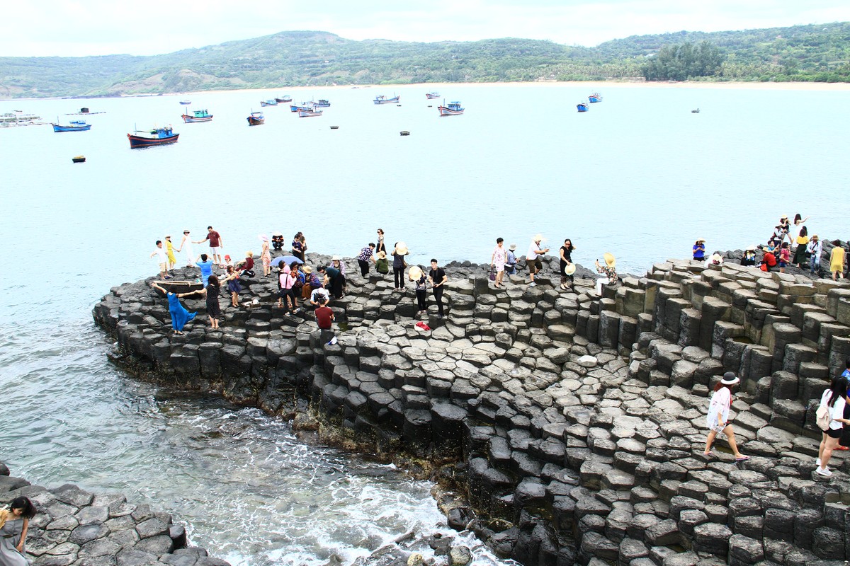 Ghềnh đá được tạo thành từ sự đứt gãy của nham thạch núi lửa khi gặp nước biển. Ảnh: Thành Nguyễn.