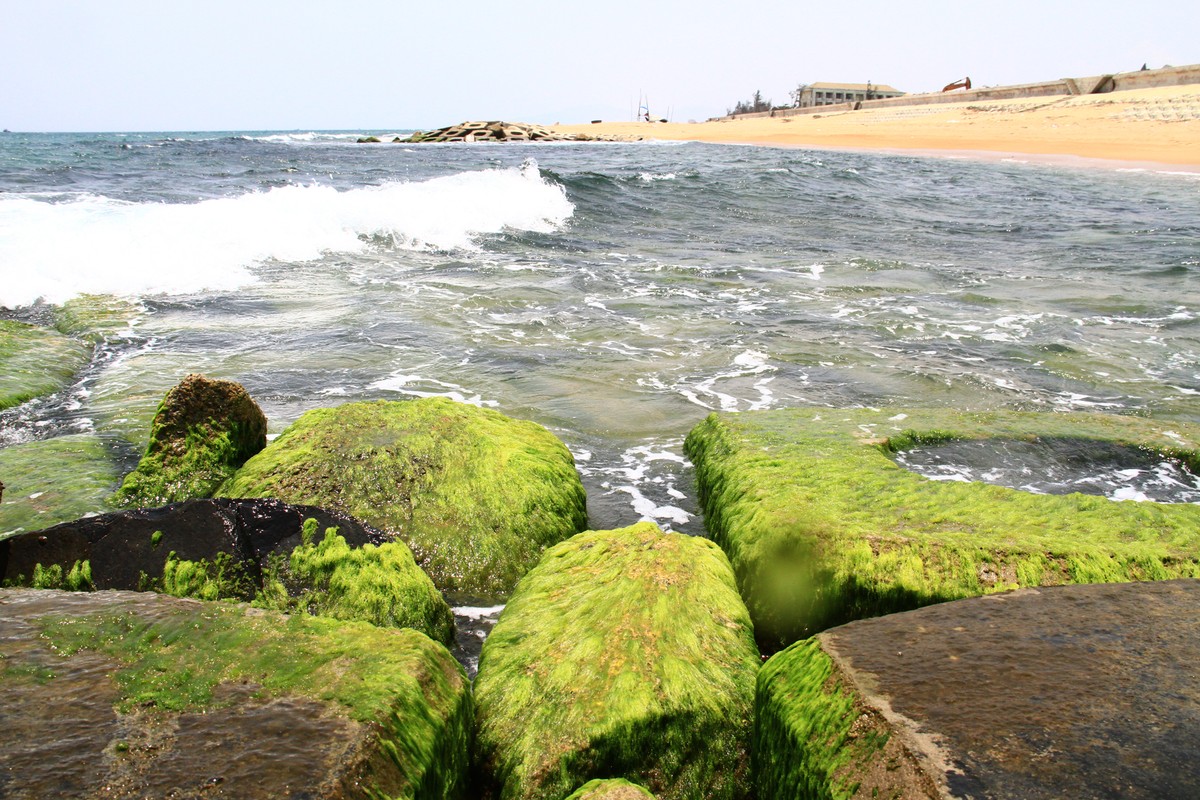 Làng chài hấp dẫn du khách và các tay máy bởi rêu xanh mượt như nhung bám trên các bờ kè. Ảnh: Thành Nguyễn.