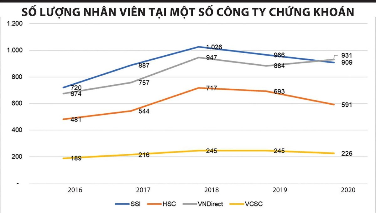 Làn sóng cắt giảm nhân sự môi giới chứng khoán gần nhất là sau khi thị trường tạo đỉnh năm 2018. Khi thị trường lao dốc với thanh khoản sụt giảm, cuộc đào thải nhân sự môi giới diễn ra mạnh mẽ. Số lượng nhân viên tại một số công ty chứng khoán giảm nhanh, một phần vì không trụ lại được ở công ty cũ, một phần họ đi tìm cơ hội ở những công ty mới trong ngành. Con số cắt giảm nhân sự tại các công ty tốp đầu như SSI, VNDIRECT, HSC... trong năm 2019 không thể hiện hết mức độ thanh lọc tàn khốc khi đó, bởi ngoài đội ngũ nhân viên chính thức còn là đội ngũ đông đảo các cộng tác viên và cả những sinh viên tập sự, sinh viên mới ra trường mang trong mình giấc mơ làm nghề chứng khoán nhưng buộc lòng phải rẽ ngang.