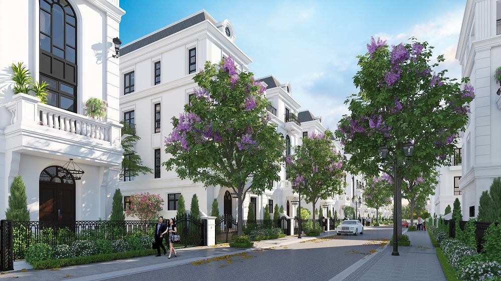 Những ngôi biệt thự, liền kề ẩn mình trong những hàng bằng lăng nở hoa tím biếc.