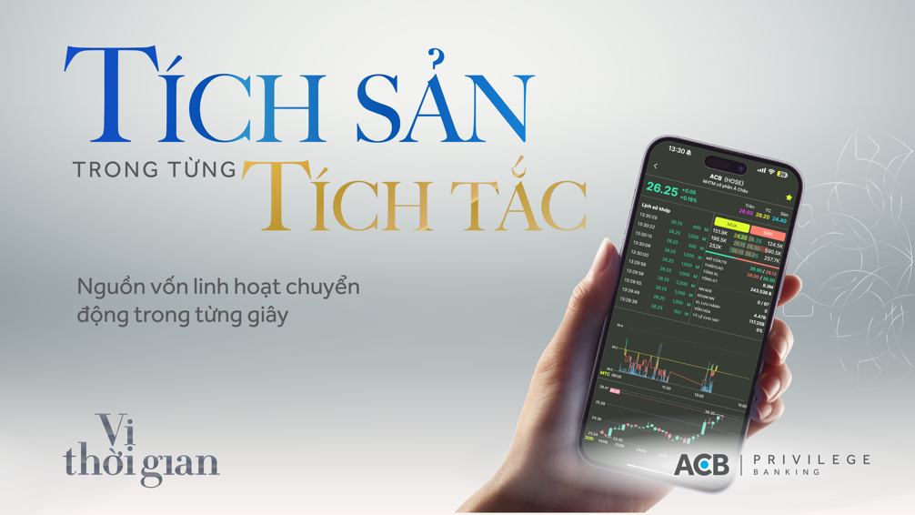 ACB tin rằng, thời gian chính là khoản đầu tư giàu lợi nhuận nhất. Với khách hàng, thời gian chính là tài sản quý giá trong thời đại ngày nay. Đối với giới thượng lưu, tư duy sử dụng thời gian cũng vô cùng khác biệt. Họ sẵn sàng đầu tư hàng triệu đô cho những công nghệ làm tăng năng suất, giảm bớt thời gian làm việc hay chi trả cả tỷ đô cho những trải nghiệm du lịch xa xỉ bậc nhất. Hiểu đơn giản, mỗi phút trôi qua đều không được phép lãng phí. Trong đó, tăng trưởng tài sản và tận hưởng cuộc sống đều là những phần trọng yếu tạo nên khoảng thời gian chất lượng.