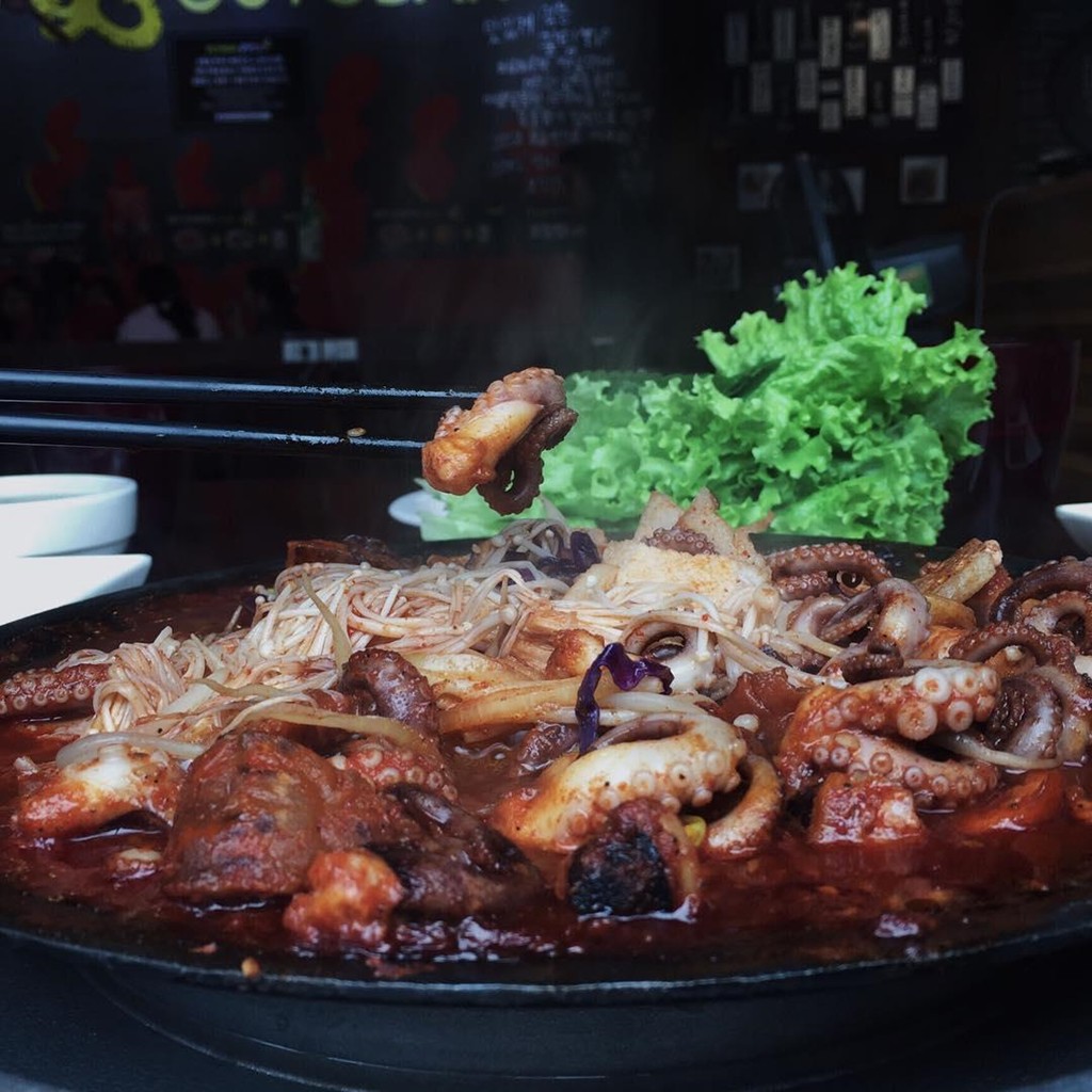 Nhà hàng Octobar: Bạch tuộc có vị cay, mang hương vị đậm đà được cuốn với rau sống sẽ khiến thực khách khó lòng buông đũa. Ngoài bạch tuộc, ở đây có rất nhiều món ăn ngon của xứ sở kim chi như cơm hải sản, rượu gạo, rượu soju… Không gian nhà hàng rộng, thích hợp cho những bữa tiệc đông người. Nếu đi cùng nhóm, bạn đừng quên gọi lẩu bạch tuộc nướng. Giá: Khoảng 220.000 đồng/người.