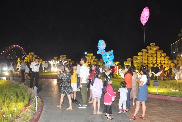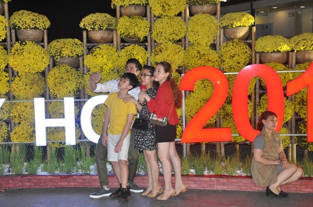 Rất đông người dân Đà Nẵng để đến đường hoa xuân để cùng chào đón thời khắc giao thừa.