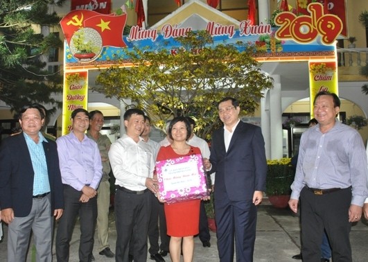 Ông Huỳnh Đức Thơ, Chủ tịch UBND TP. Đà Nẵng tặng quà Tết cho chính quyền và người dân phường Nam Dương.