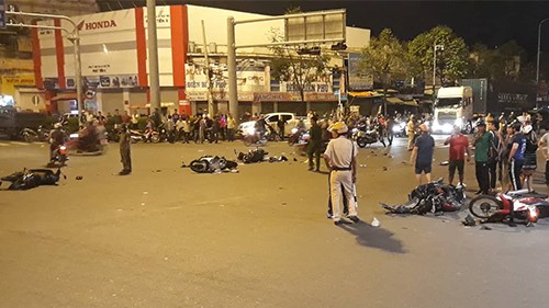 Khuya 21/10, ôtô BMW 7 chỗ lao vun vút trên đường Điện Biên Phủ, hướng từ trung tâm thành phố về cầu Sài Gòn. Đến ngã tư Hàng Xanh (quận Bình Thạnh) ôtô bất ngờ tông liên tiếp gần 10 xe máy, hất văng nhiều người. Xe gây nạn chỉ dừng lại khi tông vào chiếc taxi.