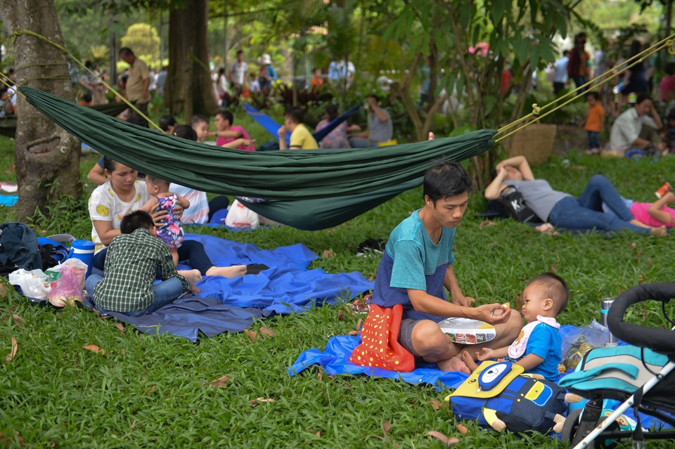 Nhiều gia đình từ tỉnh xa về Thảo Cầm Viên vui chơi đã mang theo thức ăn cũng như vật dụng cắm trại để vui chơi cả ngày ở đây.