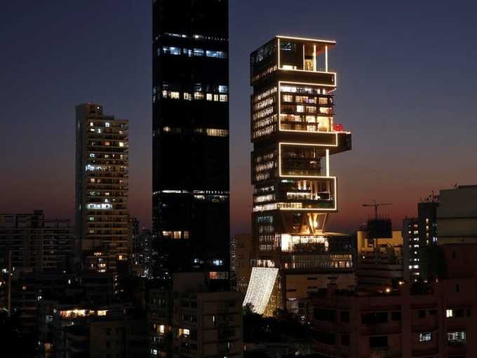 Ambani và gia đình sống trong một tòa nhà cao tới 27 tầng tại Mumbai, có chi phí xây dựng 1 tỷ USD. Đây là một trong những căn nhà đắt nhất thế giới.