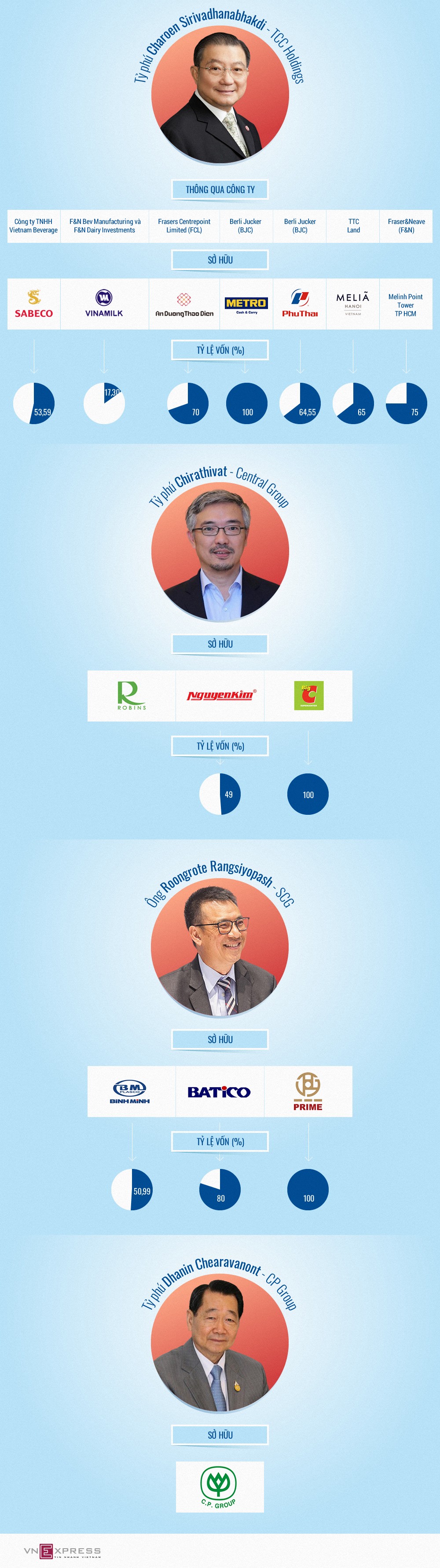 Theo Vnexpress Tin liên quan Tỷ phú Thái lãi hơn 20.000 tỷ nhờ Vinamilk 11/08/2017 14:38 Tỷ phú Thái Lan lo tiền bốc hơi khi chưa được tham gia điều hành trực tiếp Sabeco 02/04/2018 11:42 Tỷ phú mua Sabeco mất ngôi giàu nhì Thái Lan 04/05/2018 18:16 Tỷ phú Thái đưa thêm 4 người vào ban lãnh đạo Sabeco 11/05/2018 15:54 Từ khóa Nguoi giàu Thái Lan tỷ phú Thái Sabeco Vinamilk hàng thải tỷ phú thái thâu tóm nhựa bình minh