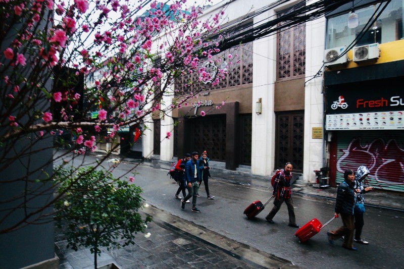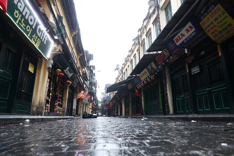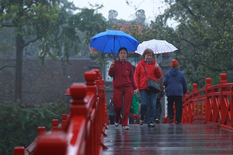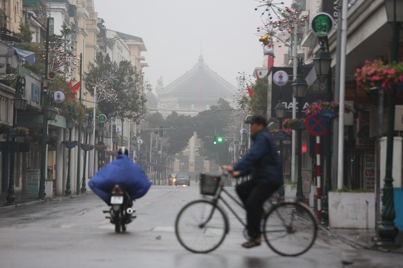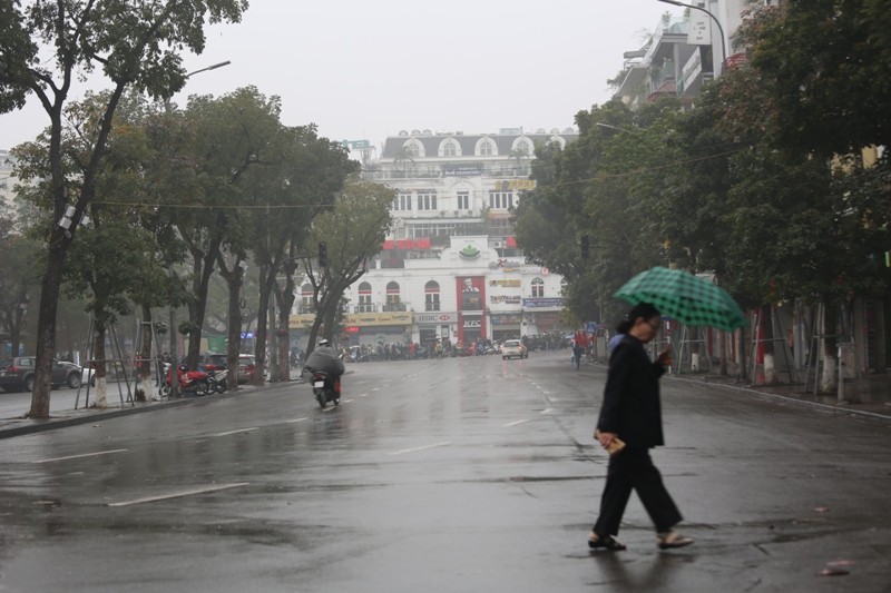 Năm nay, tại Hà Nội có mưa xuân lất phất, trời hửng sáng khá muộn, người dân ra đường thưởng ngoạn không khí thanh bình vắng vẻ ít hơn mọi năm