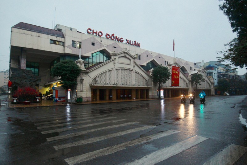 Khu chợ Đồng Xuân thường ngày tấp nập người qua lại, sáng nay cũng thưa vắng bóng người