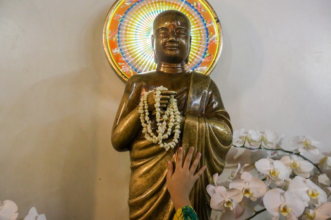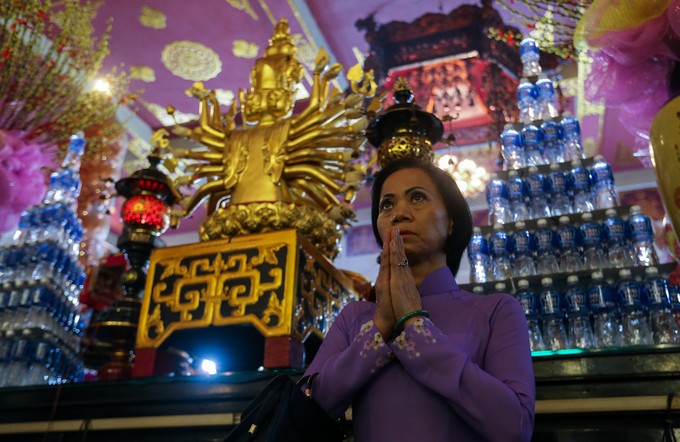 "Năm nào tôi cũng một mình từ quận 4 lên chùa Vĩnh Nghiêm sáng Mùng 1, khấn mong trời phật ban phước lành cho quốc thái dân an, sức khỏe cho bản thân và gia đình", chị Nguyễn Thúy Hằng (50 tuổi) nhẹ nhàng nói.