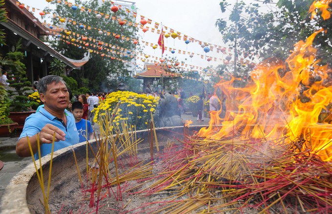 Đi lễ chùa đầu năm là điều không thể thiếu của đa số gia đình mỗi dịp Tết. Những chùa lớn như Vĩnh Nghiêm, Xá Lợi (quận 3), Việt Nam Quốc Tự (quận 10), Phổ Quang (Tân Bình)... đều chật kín người sáng Mùng 1 Tết.