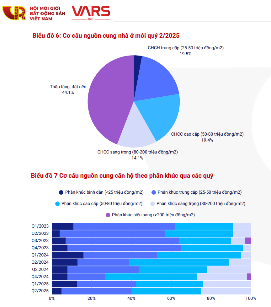Tuy nguồn cung nhà ở tăng nhưng cơ cấu vẫn mất cân đối. Thị trường chủ yếu mở bán căn hộ cao cấp, hạng sang, gần như không có căn hộ thương mại dưới 60 triệu/m2. Khả năng giảm giá gần như không có. Lý giải cho diễn biến này, đại diện VARS đưa ra 4 nguyên nhân, bao gồm: