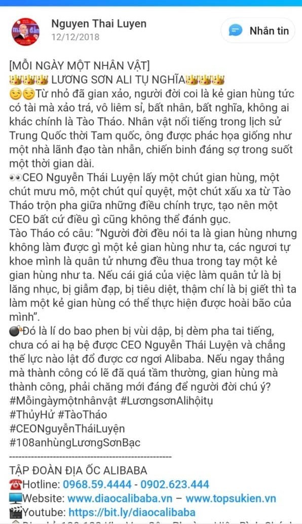 Nguyễn Thái Luyện, Chủ tịch Địa ốc Alibaba: Mơ làm Tào Tháo và lập Lương Sơn Ali Tụ Nghĩa ảnh 3
