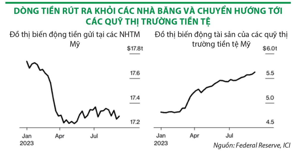 Trong bối cảnh này, người gửi tiền có xu hướng dịch chuyển sang các quỹ thị trường tiền tệ, với lãi suất thấp nhất là 4%/năm. Chưa kể, việc một số ngân hàng địa phương gặp khủng hoảng xuất phát từ sự sụp đổ của Silicon Valley Bank (SVB) vào tháng 3/2023 cũng khiến người dân Mỹ lo ngại với việc gửi tiền tại các ngân hàng.