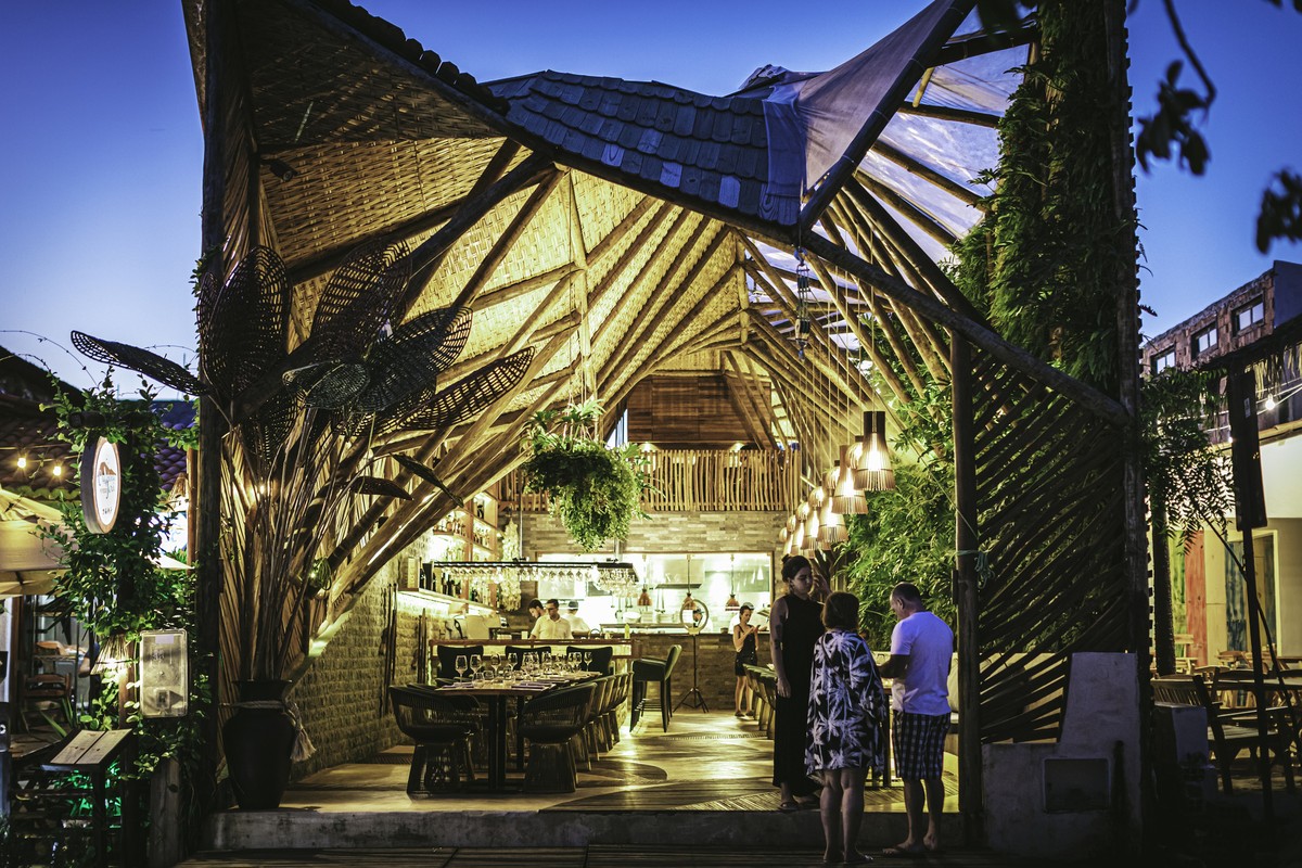 Phần mái được xây dựng bằng gỗ, kết hợp nhiều trụ đỡ theo khung hình tròn khiến nhà hàng Ello tựa như hình bóng của ốc đảo giữa cồn cát trắng. Không gian nơi đây thu hút sự chú ý của du khách bởi lối thiết kế, trang trí đơn giản, thô mộc, nhưng không vì vậy mà kém phần tinh tế. Đây cũng là biểu tượng cho lối sống của người dân tại Jericoacoara (Brazil), phóng khoáng, mạnh mẽ mà đầy chất thơ và tinh tế.