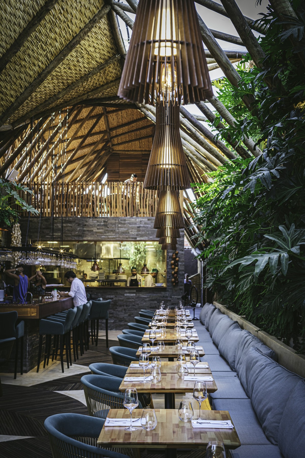 Tại nhà hàng Ello, thực khách có thể tự do chạm chân trần trên nền cát, thưởng thức đồ ăn và không gian được truyền cảm giác thân thuộc từ lối thiết kế truyền thống và nguyên liệu thô mộc. Đường phố bên ngoài càng đông đúc, những cao ốc càng san sát thì bầu không khí nơi đây càng được trân trọng và ngưỡng mộ.