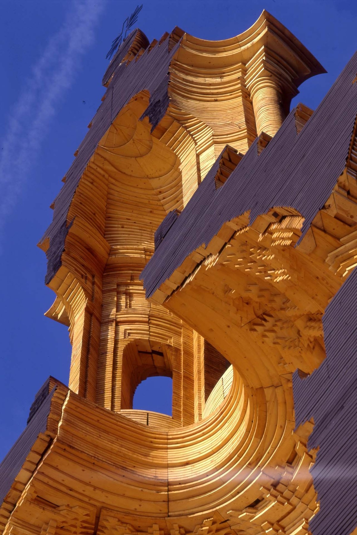 Được xây dựng năm 1999 hoàn toàn bằng gỗ với chiều cao gần 33, bao gồm 35.000 thanh gỗ với độ dày khoảng 4,5 cm, kết nối bằng các dây thép.