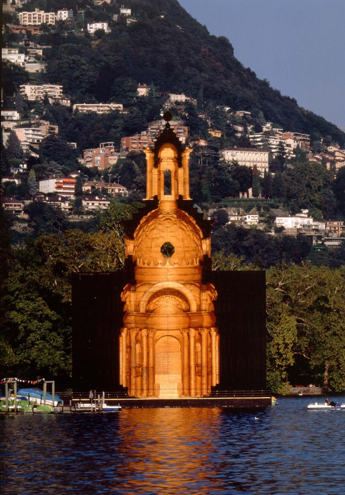 Mặc dù ý tưởng ban đầu là để Nhà thờ nổi trên mặt hồ, nhưng sau đó, toàn bộ khối nhà được đặt trên một nền vuông cách vài mét so với bờ hồ.