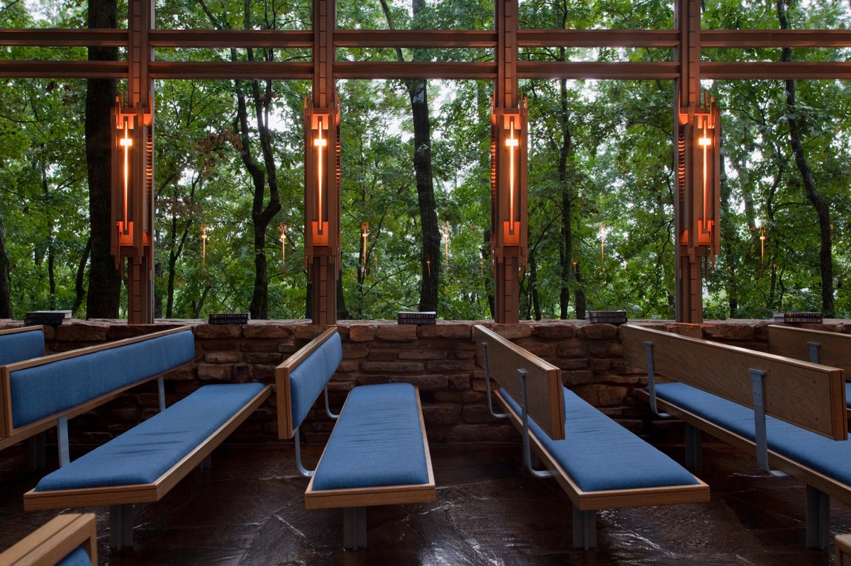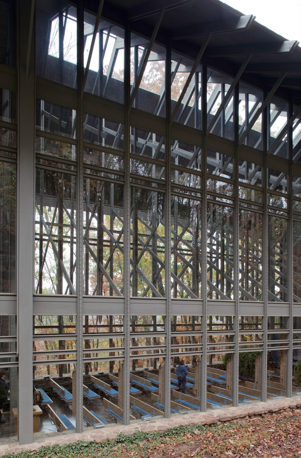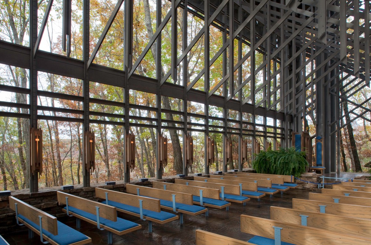 Với hơn 425 ô cửa kính và các hàng cột trụ nối dài, Thorncrown được xây dựng với ý tưởng tạo một khu rừng nhỏ trong khu rừng lớn.